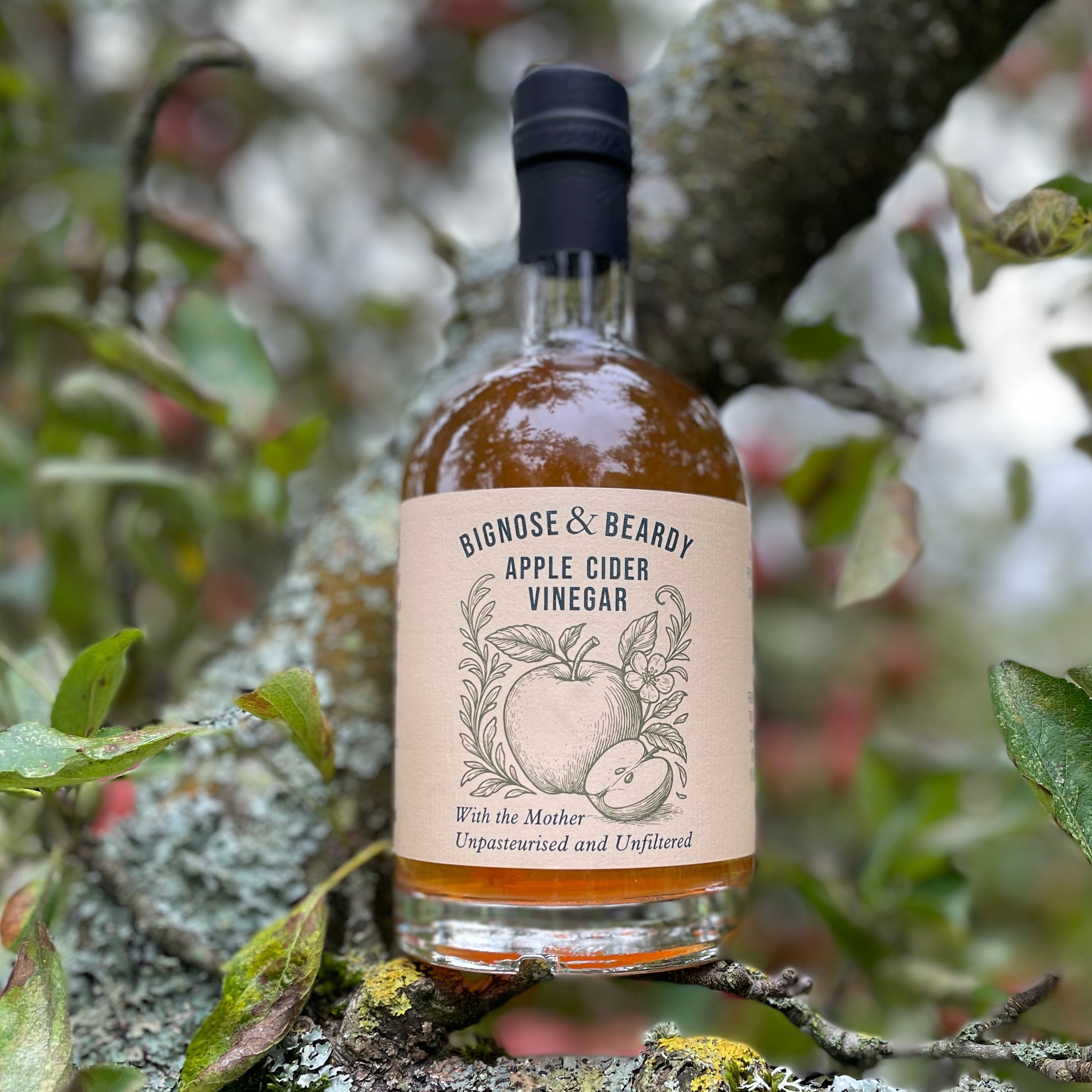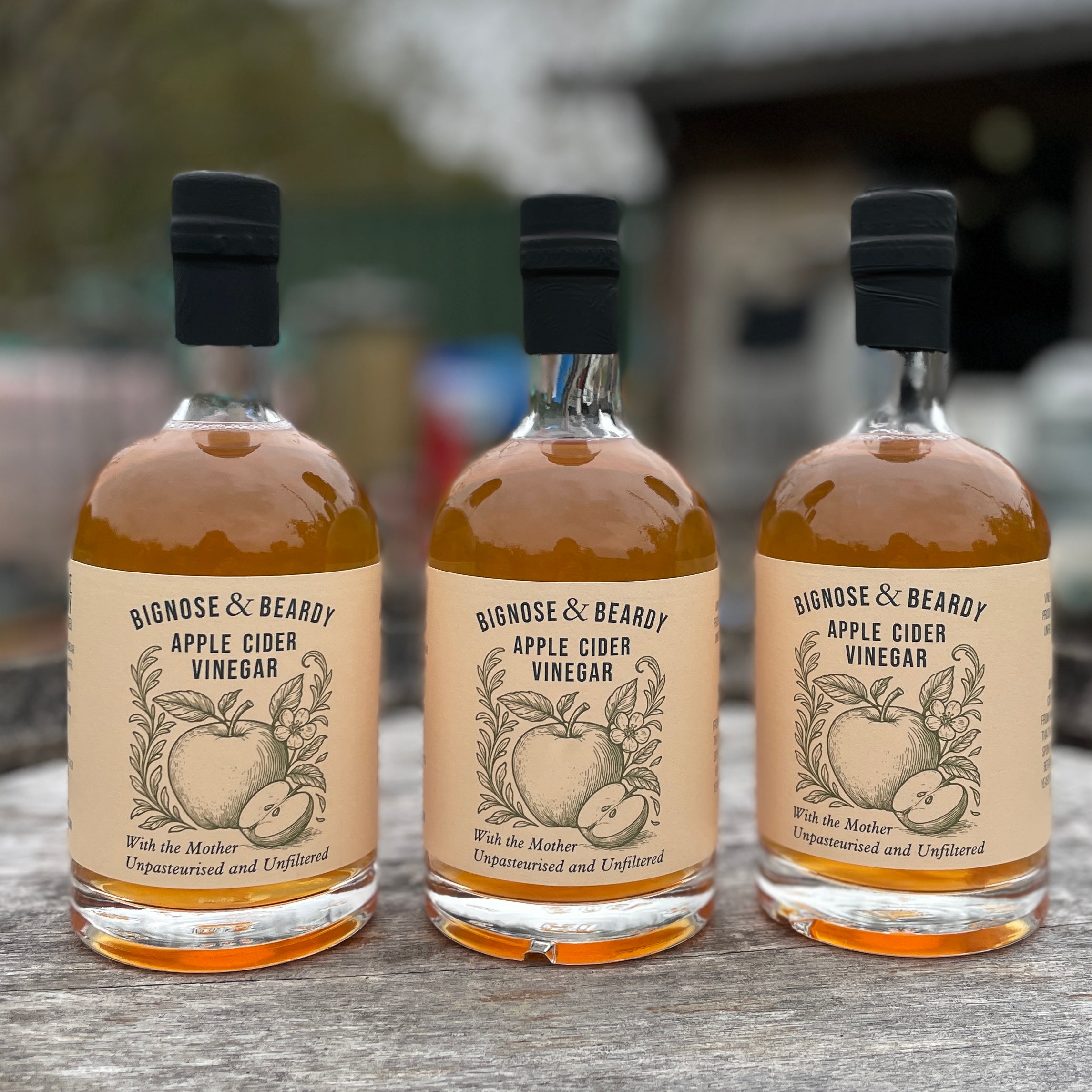 Bignose & Beardy apple cider vinegar (ACV) is based on wild fermented ciders that have been allowed to spontaneously referment before maturing for at least two years.
